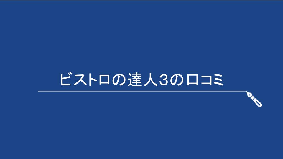 この記事では、ビストロの達人3の口コミや評判などを紹介しています。