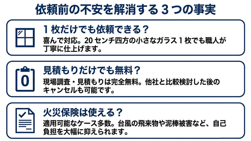 初めてガラス修理を頼むときは、分からないことがたくさんあって当然です。
