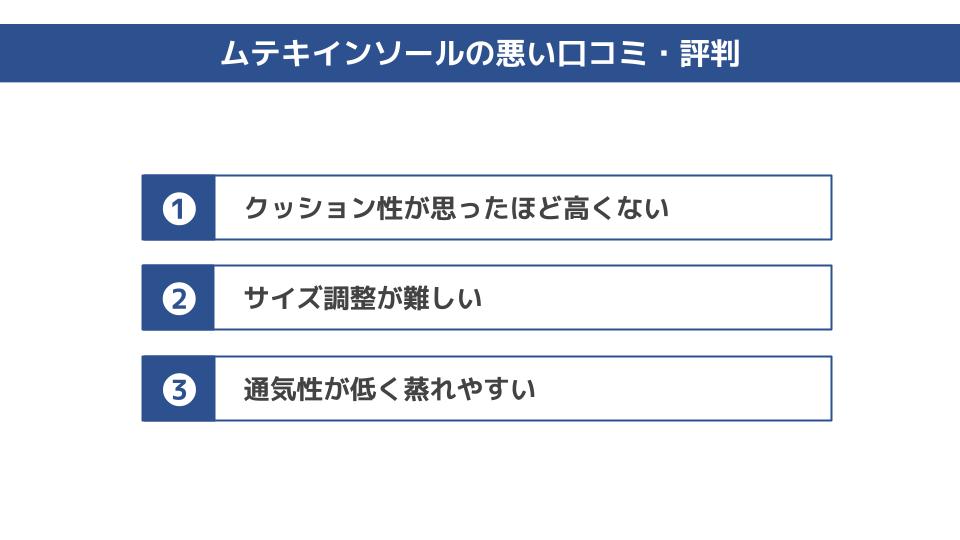 ムテキインソールの悪い口コミをまとめると、次のような意見が目立ちました。